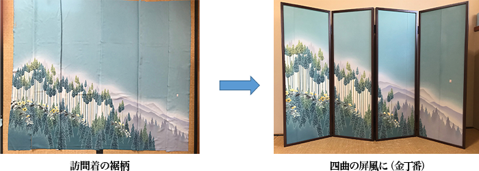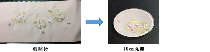 ・「ガラス器」・・・・・・付下げ、訪問着、小紋、袋帯、名古屋帯、帯揚げ、衿などから ・「ガラスプレート」・・・付下げ、訪問着、小紋、袋帯、名古屋帯などから ・「友禅時計」・・・・・・小紋、袋帯、名古屋帯、帯揚げなどから ・「インテリアパネル」・・産着、四つ身、訪問着、袋帯、羽織などから ・「ガラス衝立」・・・・・留袖、色留袖、黒羽織、産着、四つ身、訪問着などから ・「灯り」・・・・・・・・振袖、派手な訪問着、女産着、ストールなどから -